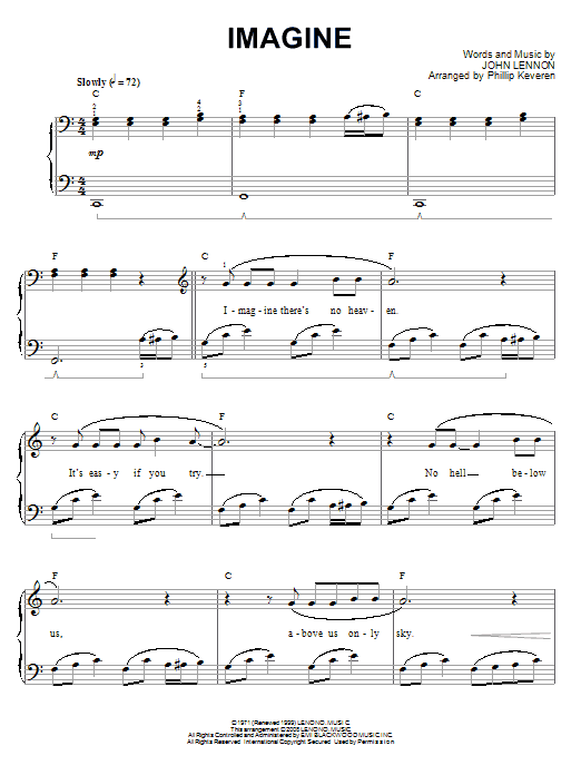 Download or print John Lennon Imagine (arr. Phillip Keveren) sheet music, chords and digital score arranged for Piano Solo. This Folk score includes 4 page(s).