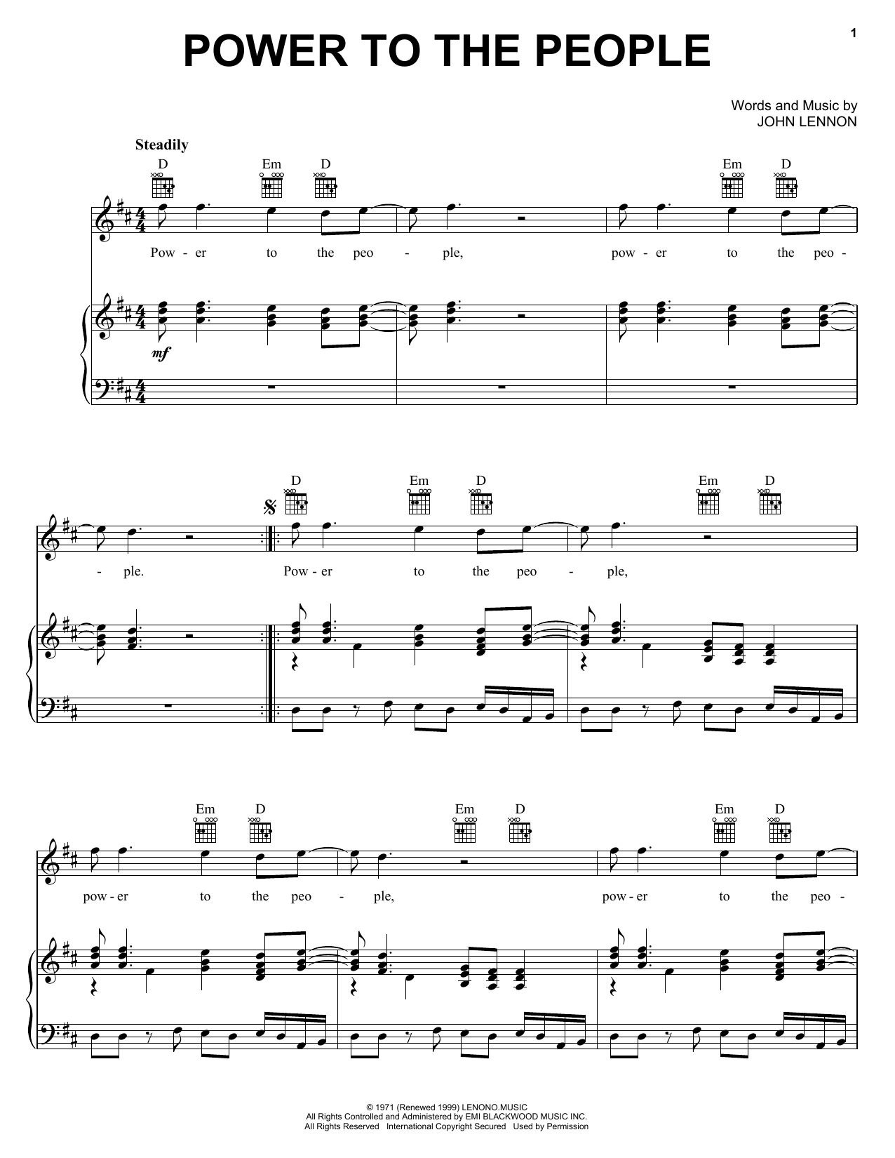 Download or print John Lennon Power To The People sheet music, chords and digital score arranged for Guitar Chords/Lyrics. This Rock score includes 2 page(s).
