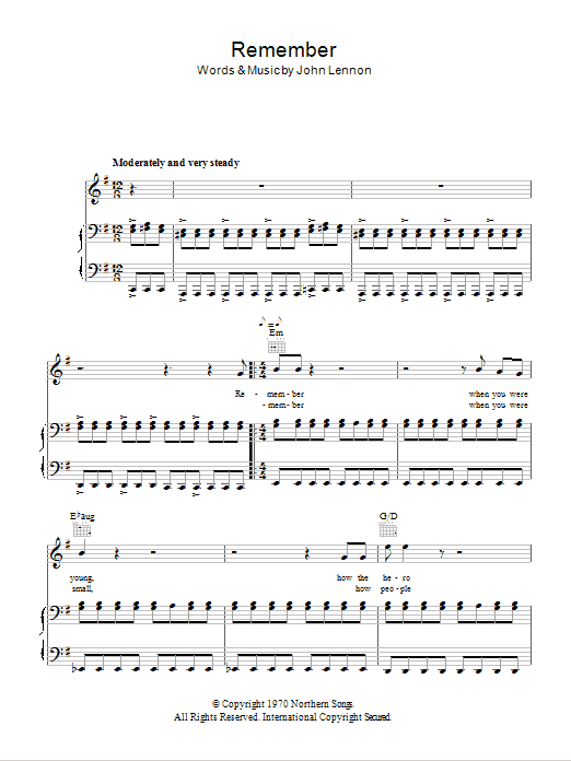 Download or print John Lennon Remember sheet music, chords and digital score arranged for Lead Sheet / Fake Book. This Pop score includes 3 page(s).