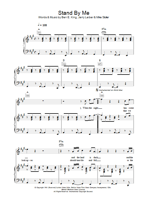 Download or print John Lennon Stand By Me sheet music, chords and digital score arranged for Piano, Vocal & Guitar Chords. This Film/TV score includes 4 page(s).