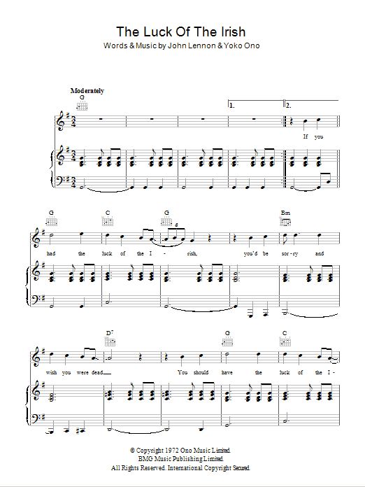 Download or print John Lennon The Luck Of The Irish sheet music, chords and digital score arranged for Lead Sheet / Fake Book. This Pop score includes 4 page(s).