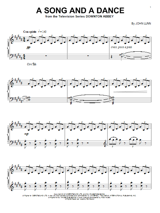 Download or print John Lunn A Song And A Dance sheet music, chords and digital score arranged for Easy Piano. This Film/TV score includes 3 page(s).