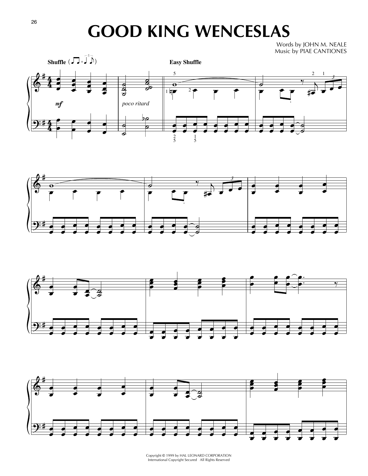 Download or print John M. Neale Good King Wenceslas [Jazz version] (arr. Frank Mantooth) sheet music, chords and digital score arranged for Piano Solo. This Christmas score includes 4 page(s).