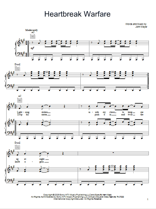 Download or print John Mayer Heartbreak Warfare sheet music, chords and digital score arranged for Guitar Tab (Single Guitar). This Pop score includes 8 page(s).