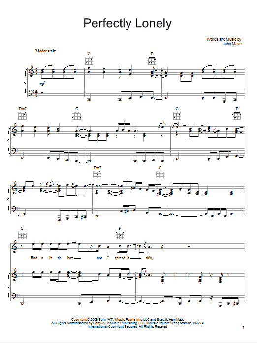 Download or print John Mayer Perfectly Lonely sheet music, chords and digital score arranged for Guitar Tab. This Pop score includes 15 page(s).