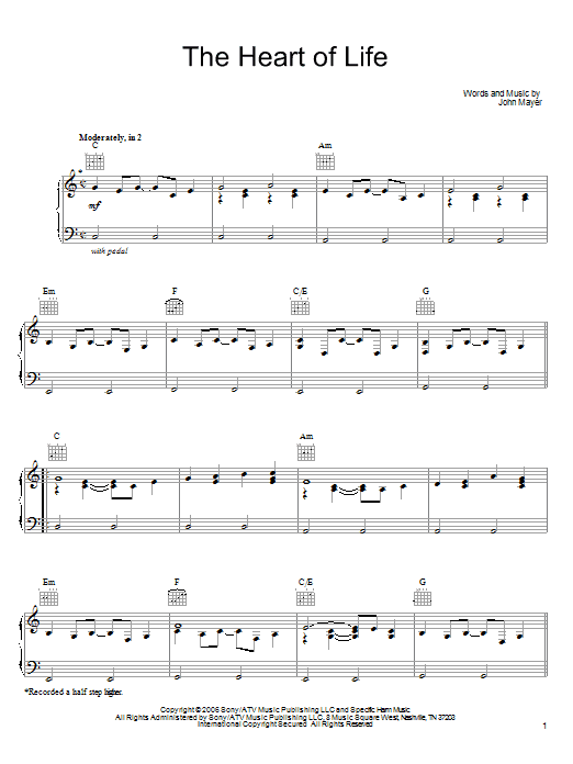 Download or print John Mayer The Heart Of Life sheet music, chords and digital score arranged for Guitar Tab. This Pop score includes 7 page(s).