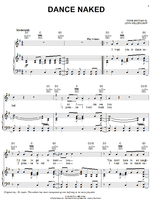 Download or print John Mellencamp Dance Naked sheet music, chords and digital score arranged for Piano, Vocal & Guitar Chords (Right-Hand Melody). This Pop score includes 6 page(s).