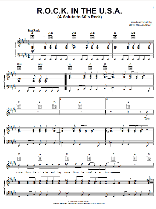 Quick facts R.O.C.K. In The U.S.A. (A Salute To 60's Rock) about digital sheet music