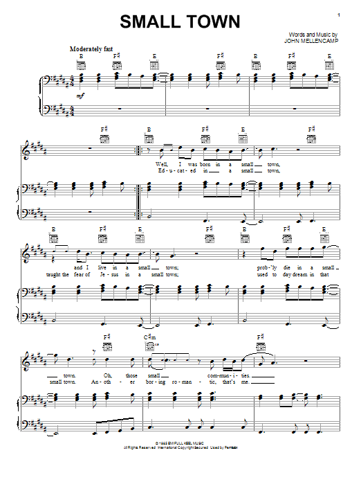 Download or print John Mellencamp Small Town sheet music, chords and digital score arranged for Violin Solo. This Pop score includes 2 page(s).