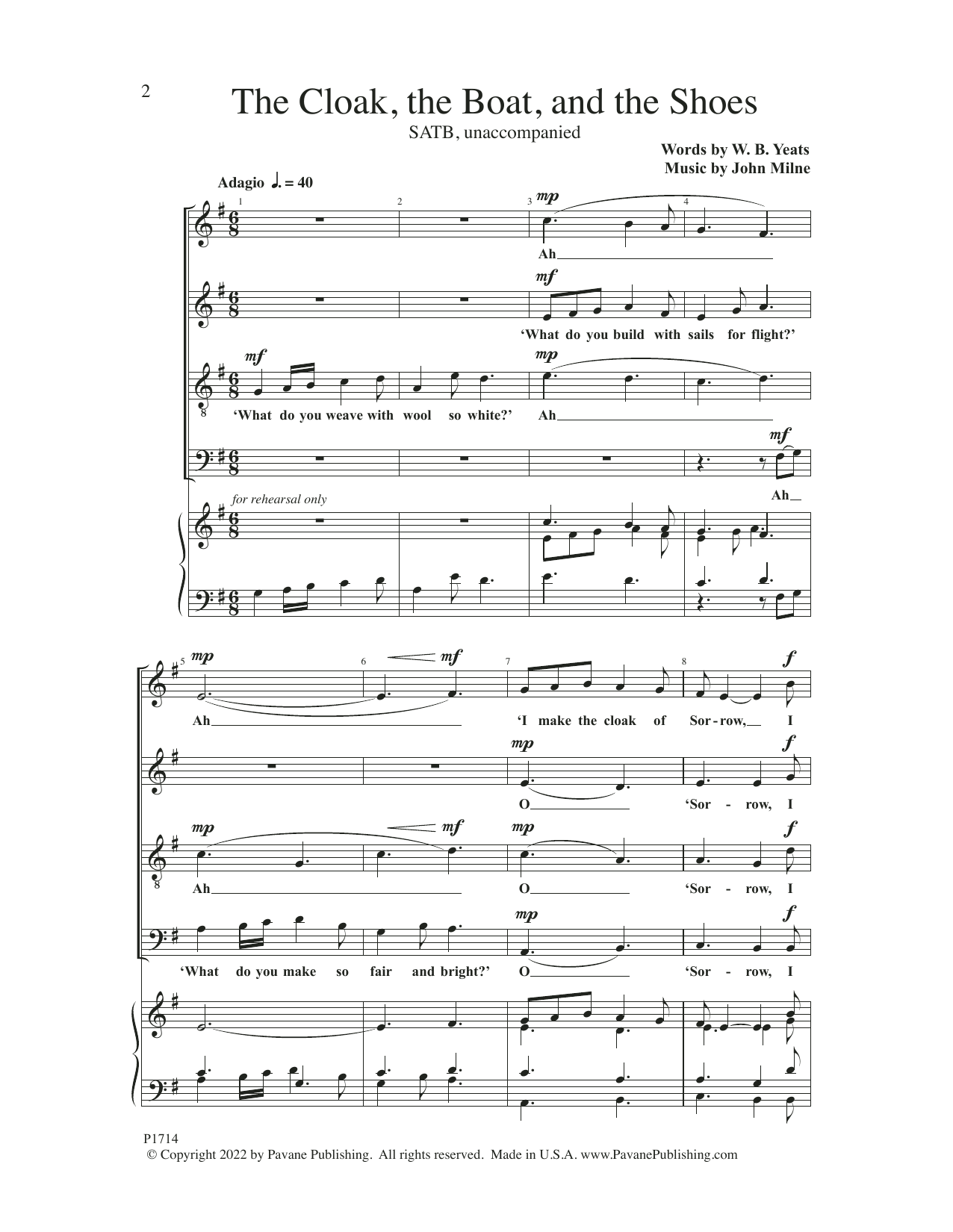 Download or print John Milne The Cloak, The Boat, And The Shoes sheet music, chords and digital score arranged for SATB Choir. This Concert score includes 7 page(s).