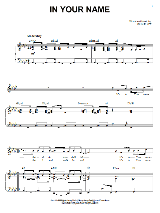 Download or print John P. Kee In Your Name sheet music, chords and digital score arranged for Piano, Vocal & Guitar Chords (Right-Hand Melody). This Christian score includes 10 page(s).
