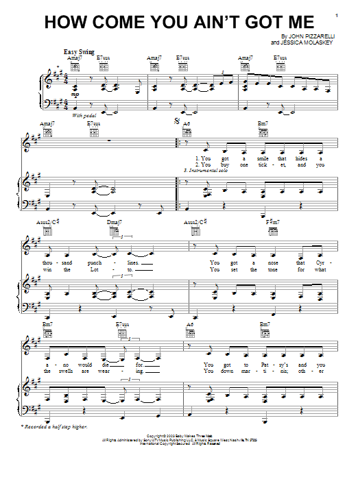 Download or print John Pizzarelli How Come You Ain't Got Me sheet music, chords and digital score arranged for Piano, Vocal & Guitar Chords (Right-Hand Melody). This Jazz score includes 5 page(s).