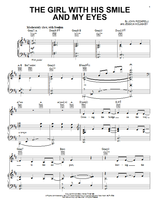 Download or print John Pizzarelli The Girl With His Smile And My Eyes sheet music, chords and digital score arranged for Piano, Vocal & Guitar Chords (Right-Hand Melody). This Jazz score includes 7 page(s).