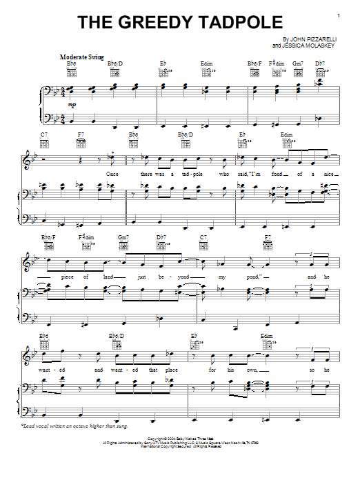 Download or print John Pizzarelli The Greedy Tadpole sheet music, chords and digital score arranged for Piano, Vocal & Guitar Chords (Right-Hand Melody). This Jazz score includes 11 page(s).