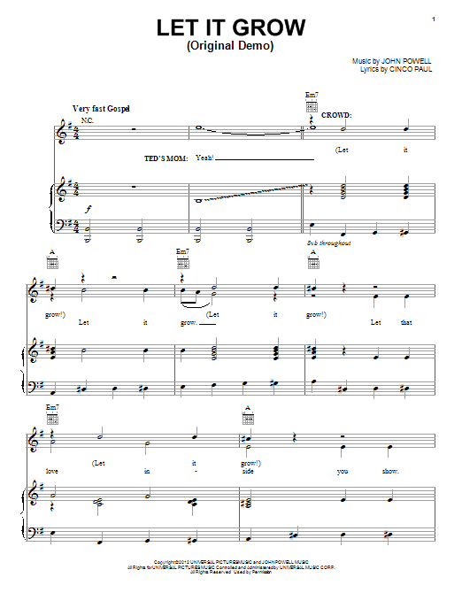 Download or print John Powell Let It Grow (Original Demo) sheet music, chords and digital score arranged for Piano, Vocal & Guitar Chords (Right-Hand Melody). This Children score includes 4 page(s).