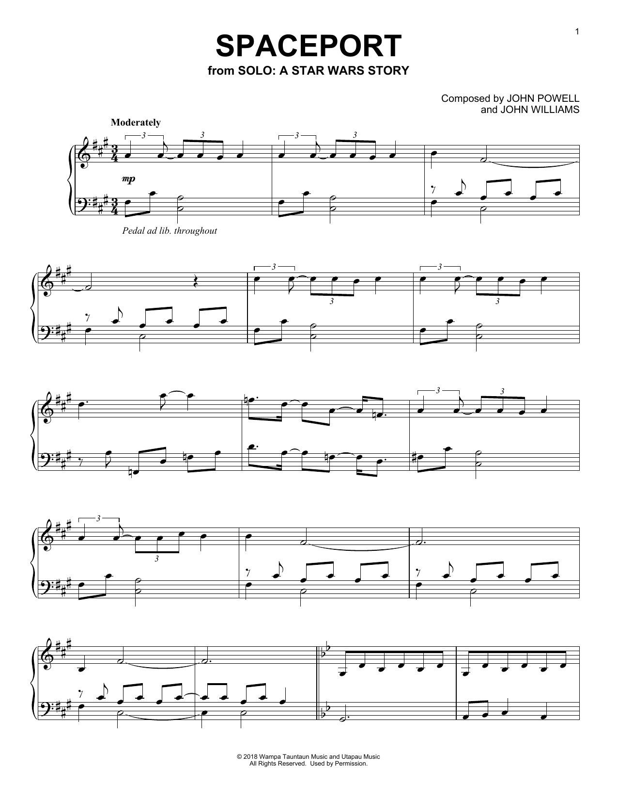 Download or print John Powell Spaceport sheet music, chords and digital score arranged for Piano Solo. This Pop score includes 3 page(s).