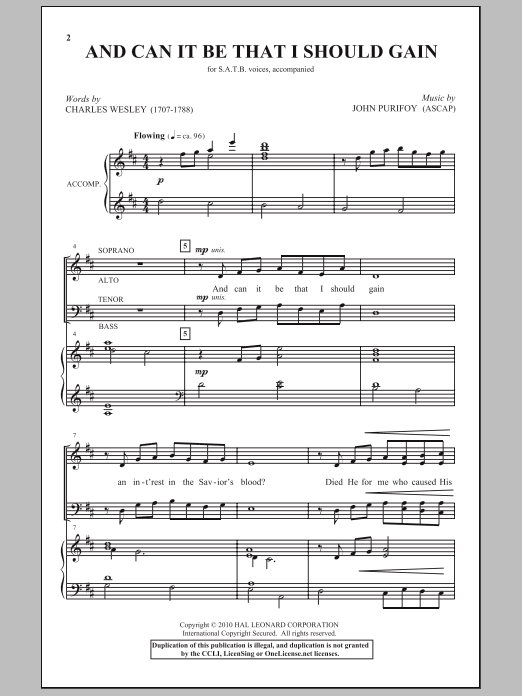 Download or print John Purifoy And Can It Be That I Should Gain sheet music, chords and digital score arranged for SATB Choir. This Easter score includes 7 page(s).