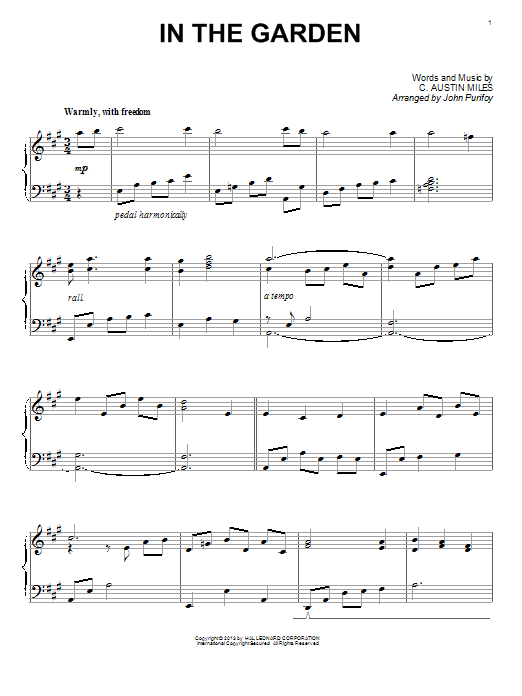 Download or print John Purifoy In The Garden sheet music, chords and digital score arranged for Piano Solo. This Christian score includes 4 page(s).