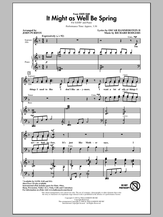 Download or print John Purifoy It Might As Well Be Spring sheet music, chords and digital score arranged for SATB Choir. This Jazz score includes 9 page(s).