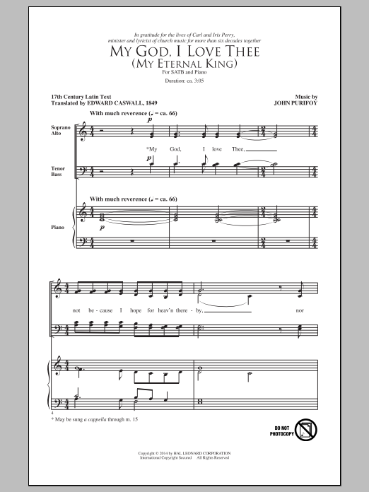 Download or print John Purifoy My God, I Love Thee (My Eternal King) sheet music, chords and digital score arranged for SATB Choir. This Sacred score includes 7 page(s).