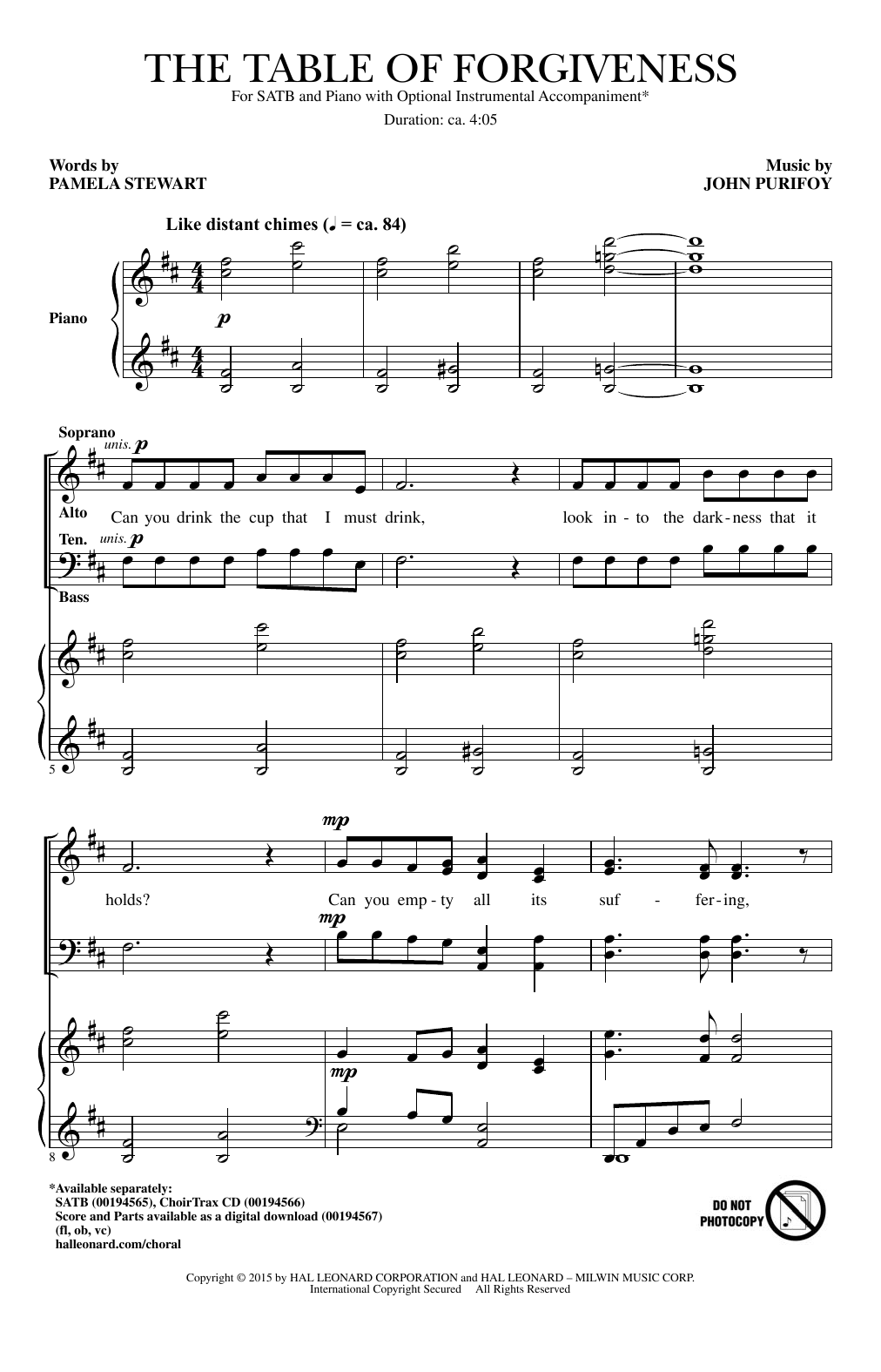 Download or print John Purifoy The Table Of Forgiveness sheet music, chords and digital score arranged for SATB Choir. This Pop score includes 9 page(s).