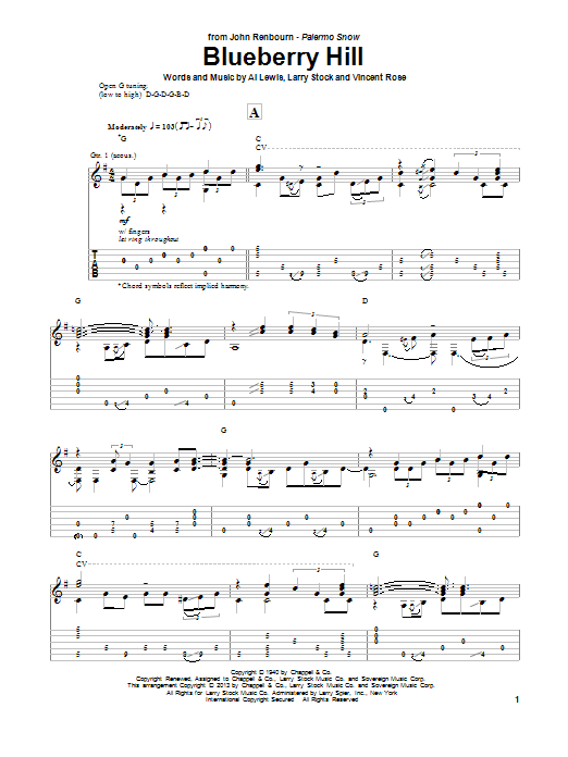 Download or print John Renbourn Blueberry Hill sheet music, chords and digital score arranged for Solo Guitar. This Standards score includes 5 page(s).