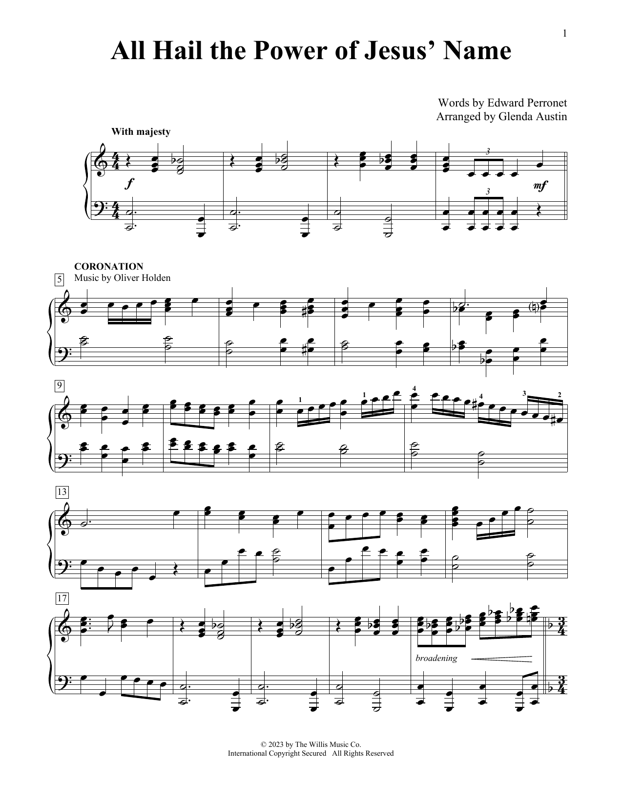 Quick facts All Hail The Power Of Jesus' Name (arr. Glenda Austin) about digital sheet music