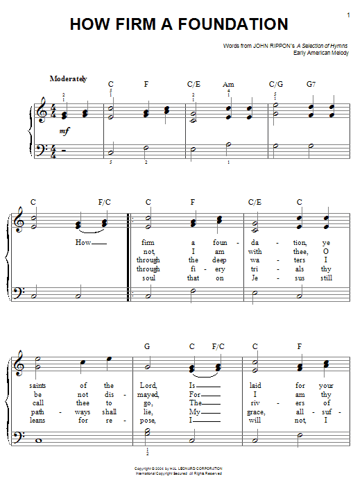 Download or print John Rippon How Firm a Foundation sheet music, chords and digital score arranged for Piano Solo. This Christian score includes 3 page(s).