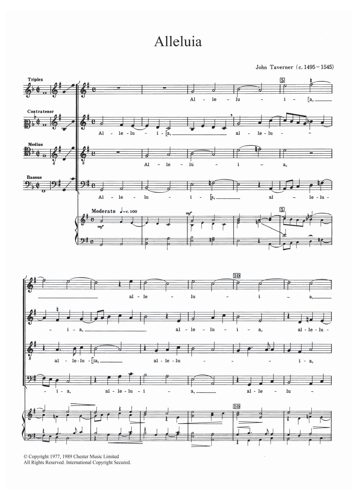 Download or print John Tavener Alleluia sheet music, chords and digital score arranged for SATB Choir. This Inspirational score includes 2 page(s).