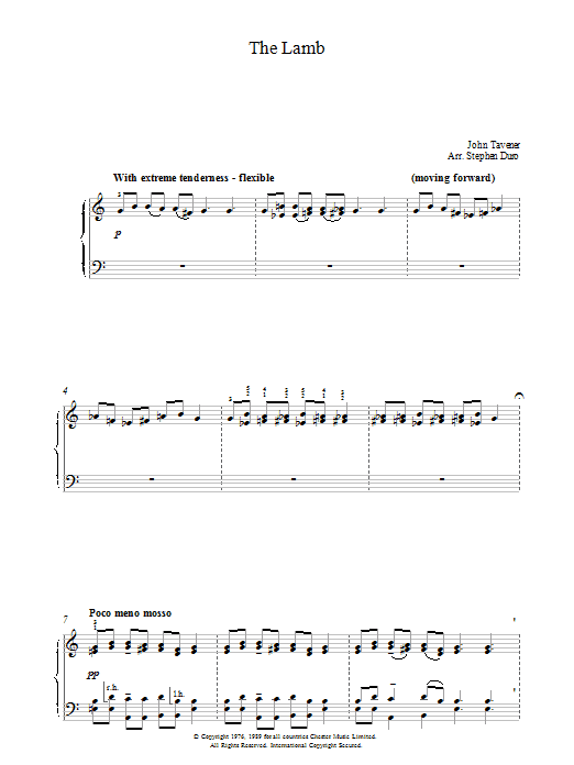 Download or print John Tavener The Lamb sheet music, chords and digital score arranged for Piano Solo. This Classical score includes 2 page(s).