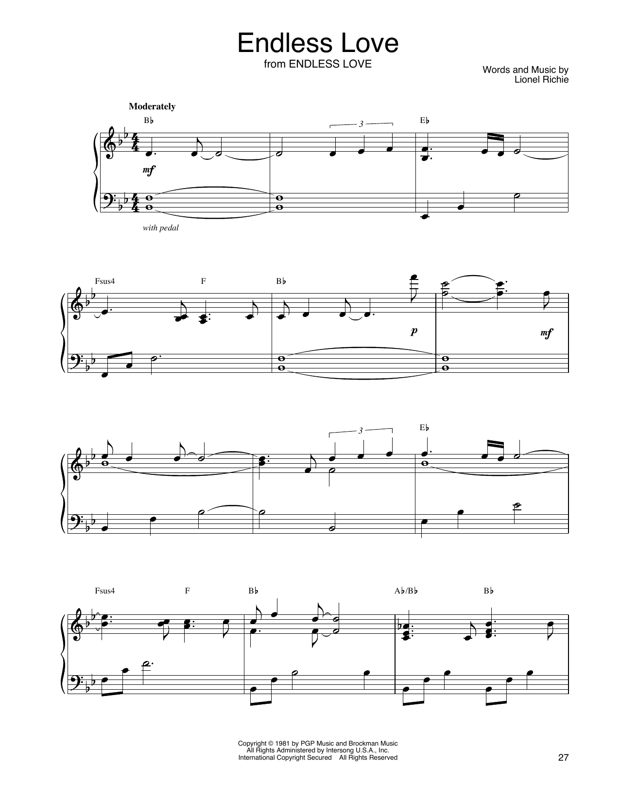 Download or print John Tesh Endless Love sheet music, chords and digital score arranged for Piano Solo. This Pop score includes 5 page(s).
