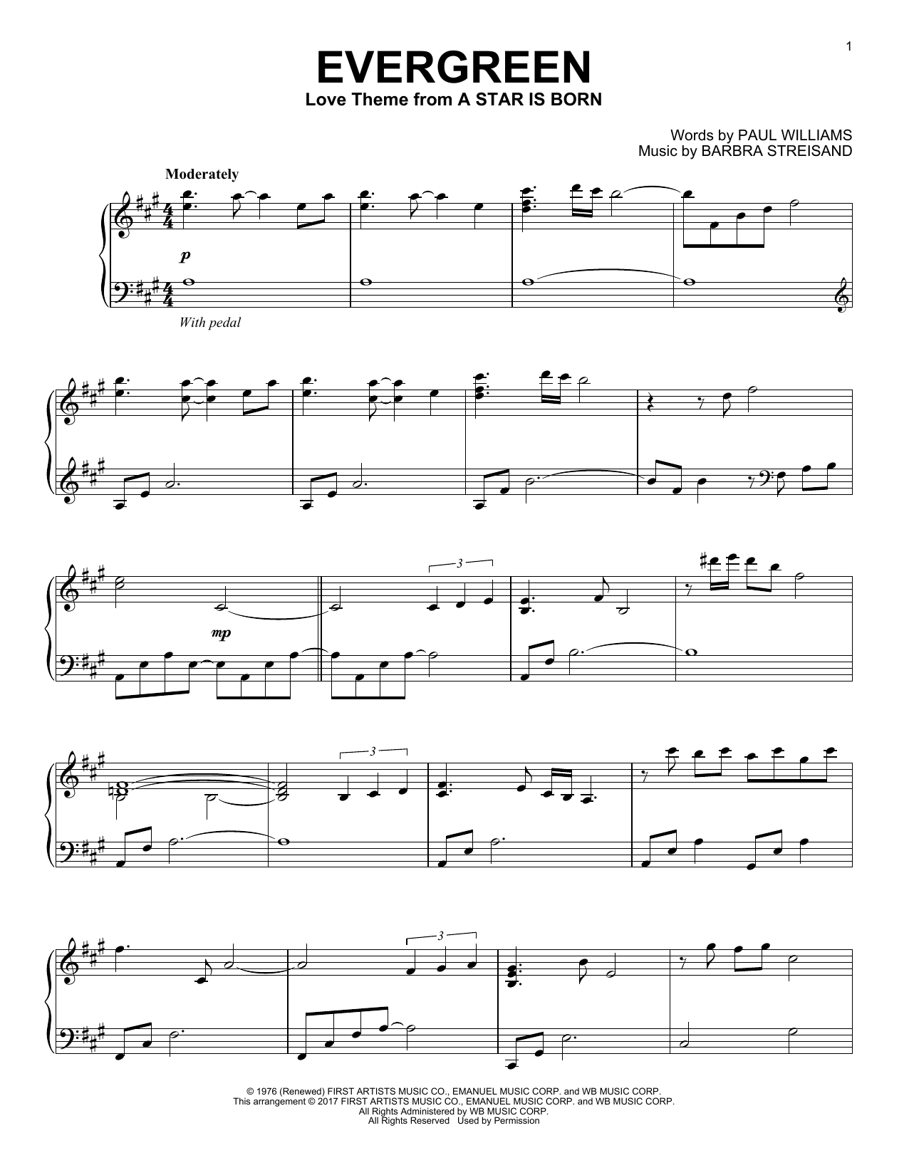 Quick facts Evergreen (Love Theme from A Star Is Born) about digital sheet music