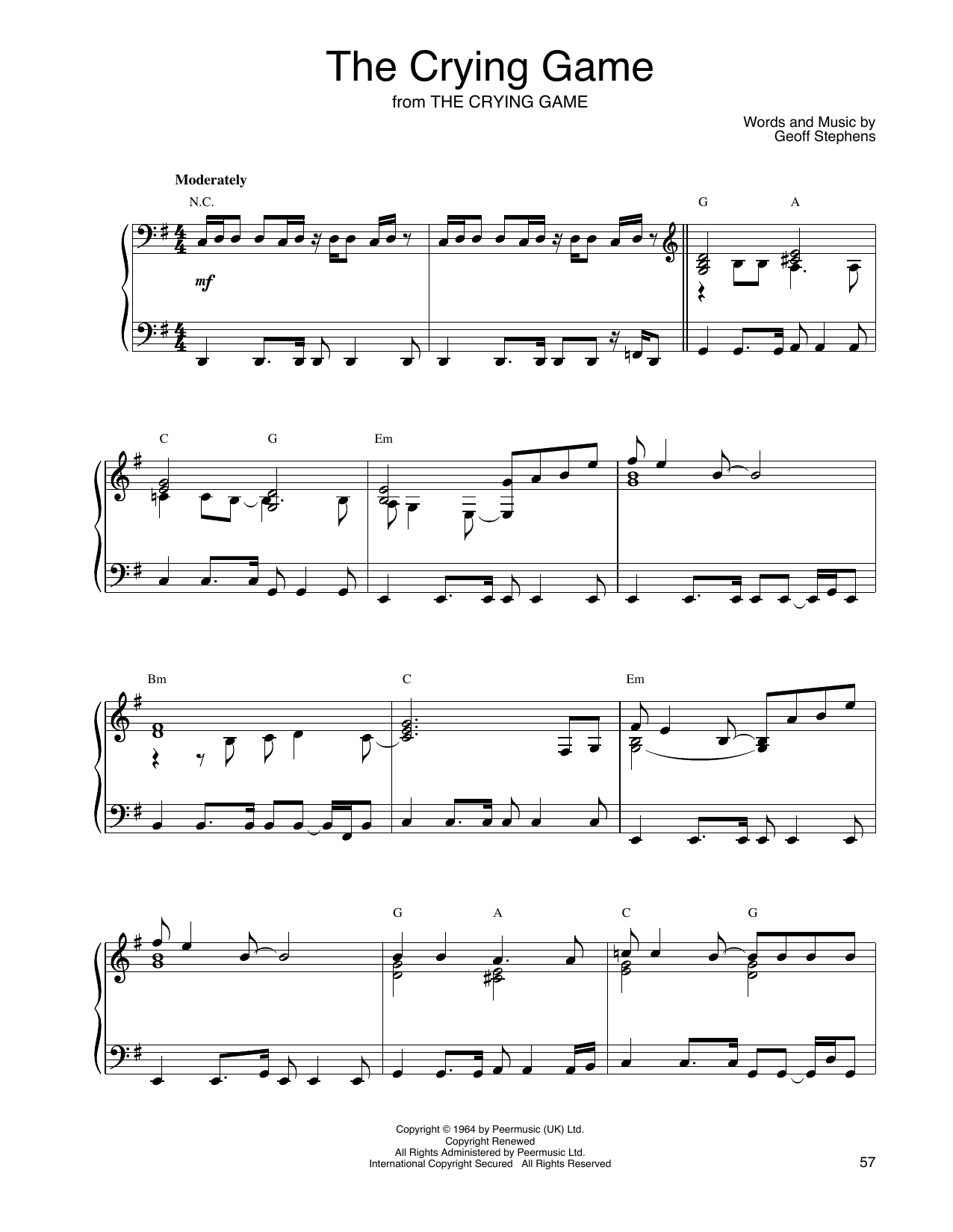 Download or print John Tesh The Crying Game sheet music, chords and digital score arranged for Piano Solo. This Pop score includes 4 page(s).