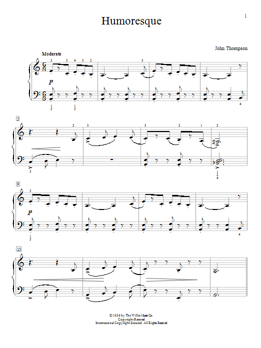 Download or print John Thompson Humoresque sheet music, chords and digital score arranged for Educational Piano. This Pop score includes 3 page(s).