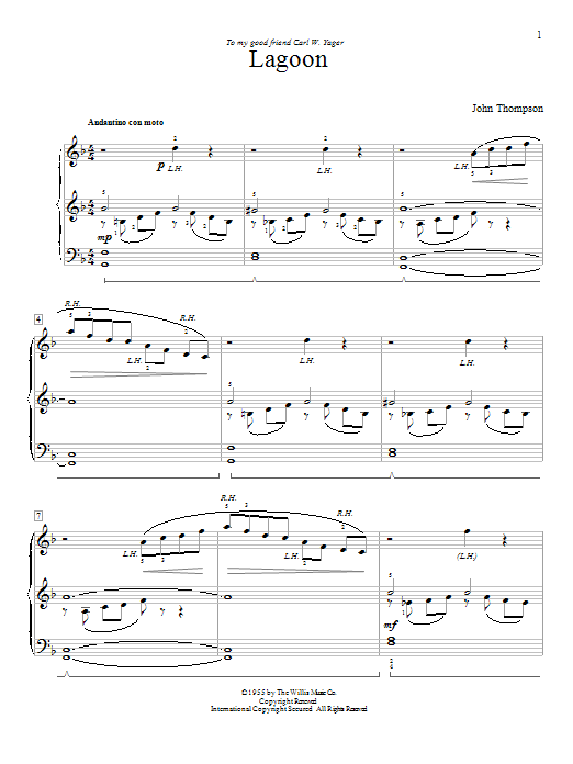 Download or print John Thompson Lagoon sheet music, chords and digital score arranged for Educational Piano. This Pop score includes 4 page(s).