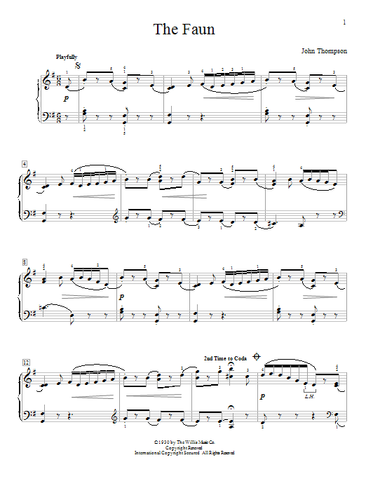 Download or print John Thompson The Faun sheet music, chords and digital score arranged for Educational Piano. This Pop score includes 2 page(s).