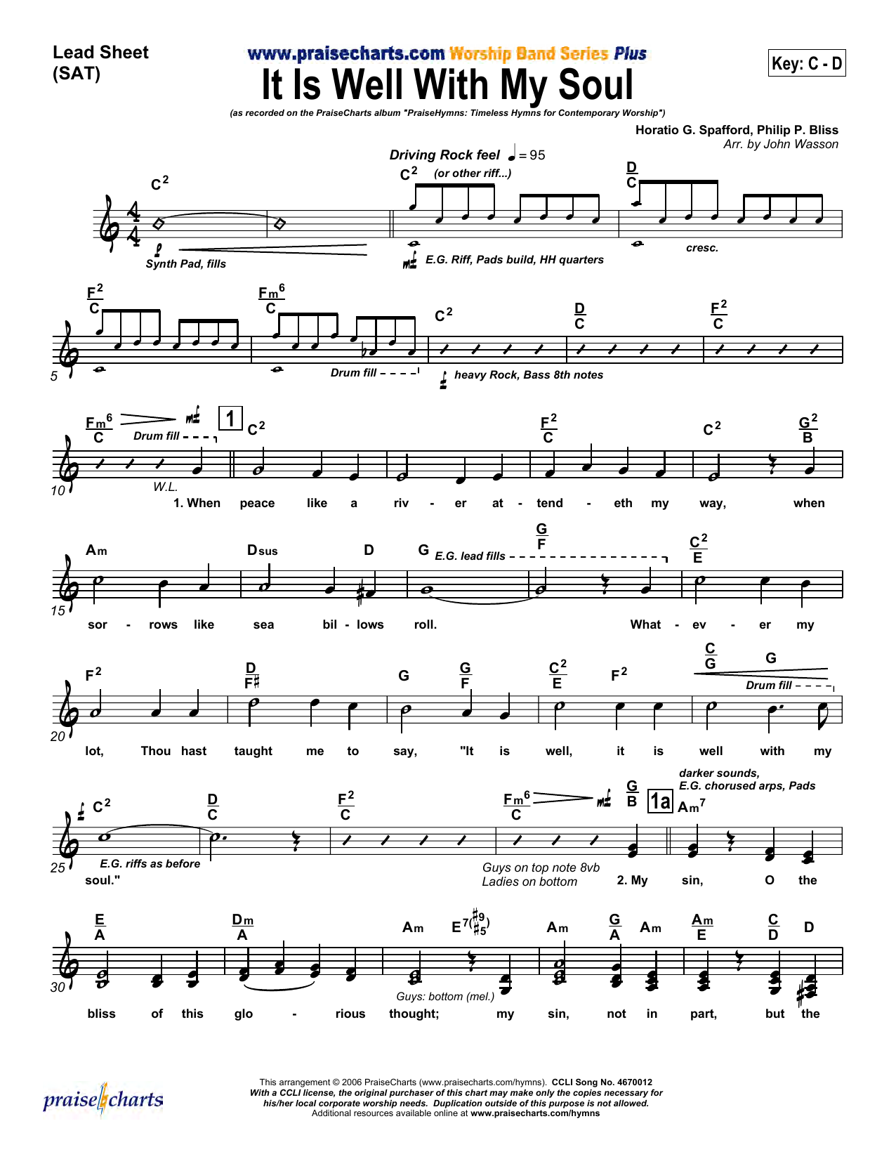 Download or print John Wasson It Is Well with My Soul sheet music, chords and digital score arranged for Lead Sheet / Fake Book. This Christian score includes 6 page(s).