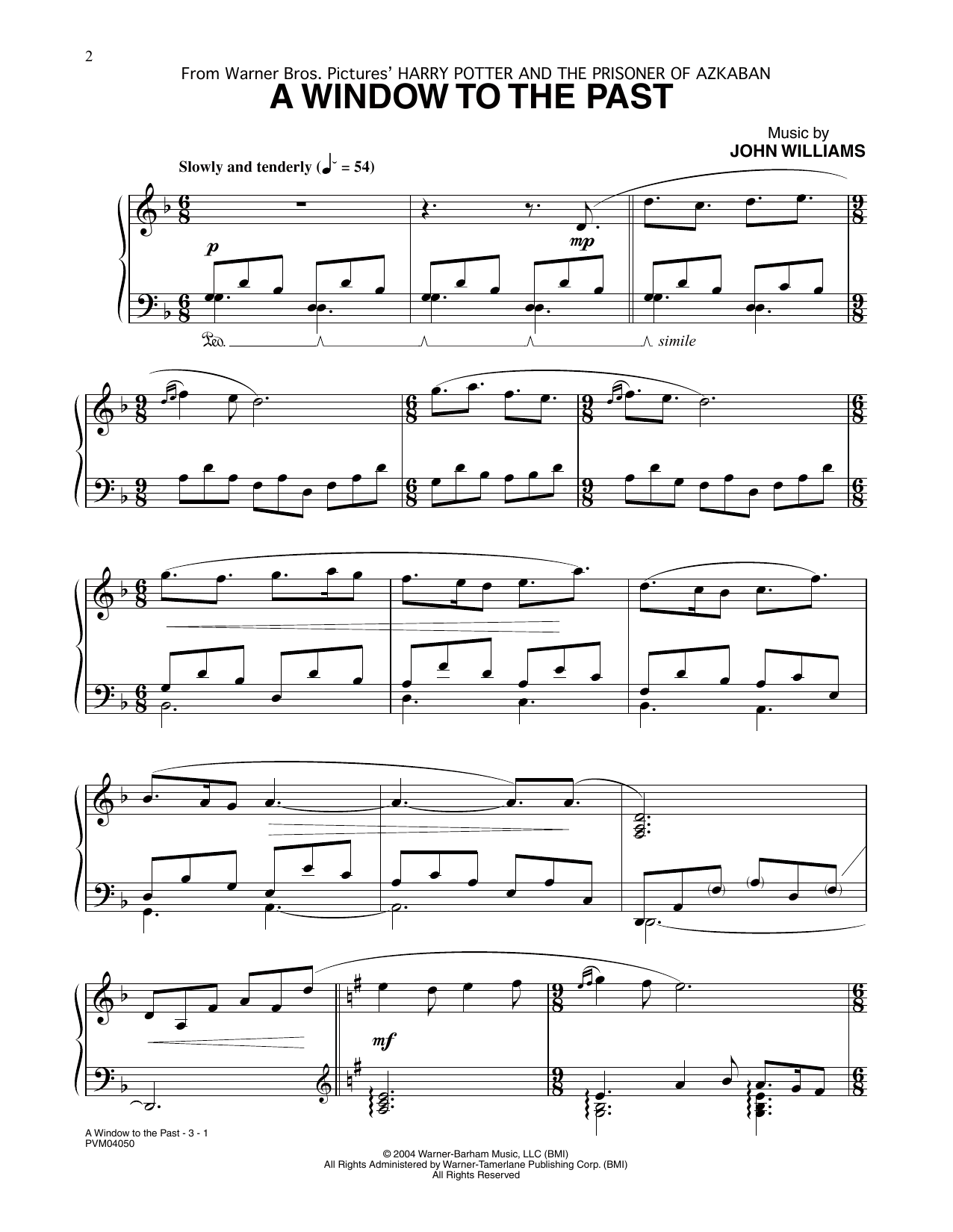 Download or print John Williams A Window To The Past (from Harry Potter) sheet music, chords and digital score arranged for Piano Solo. This Film/TV score includes 3 page(s).