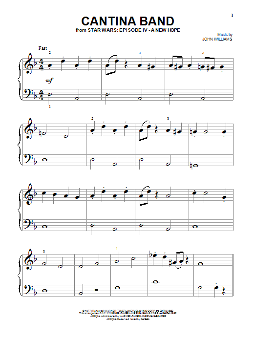 Quick facts Cantina Band (from Star Wars: A New Hope) about digital sheet music