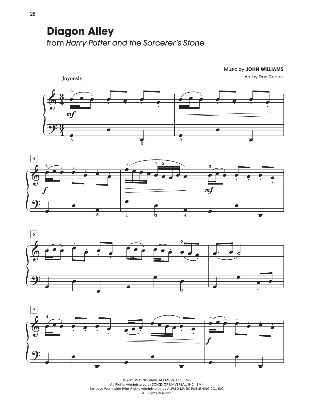 Download or print John Williams Diagon Alley (from Harry Potter) (arr. Dan Coates) sheet music, chords and digital score arranged for Easy Piano. This Film/TV score includes 3 page(s).
