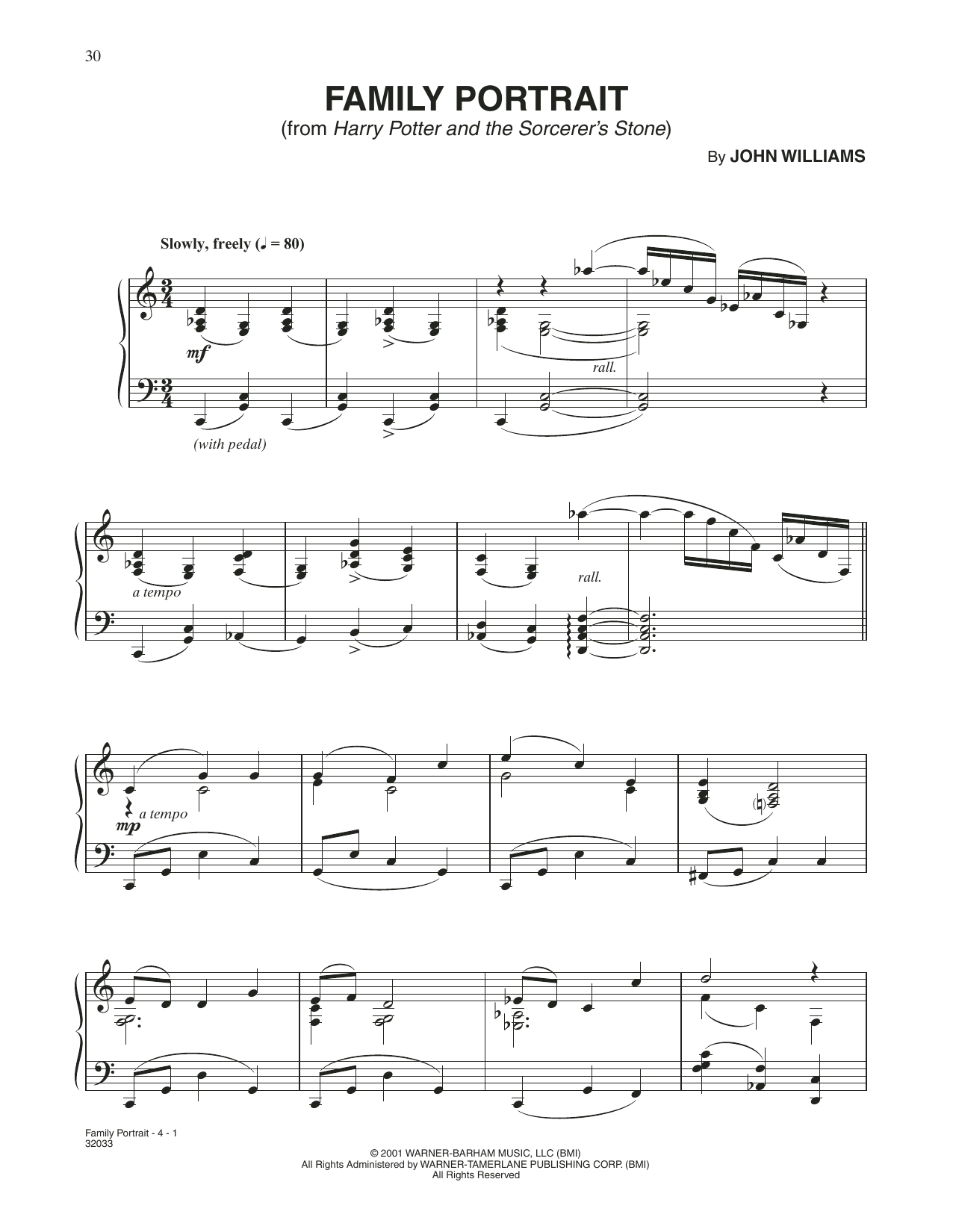 Download or print John Williams Family Portrait (from Harry Potter) sheet music, chords and digital score arranged for Piano Solo. This Film/TV score includes 4 page(s).
