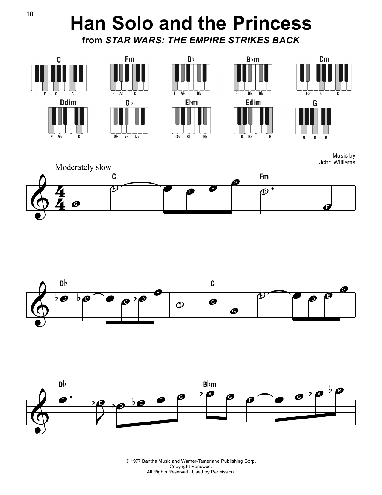 Download or print John Williams Han Solo And The Princess (from Star Wars: The Empire Strikes Back) sheet music, chords and digital score arranged for Viola Solo. This Disney score includes 1 page(s).