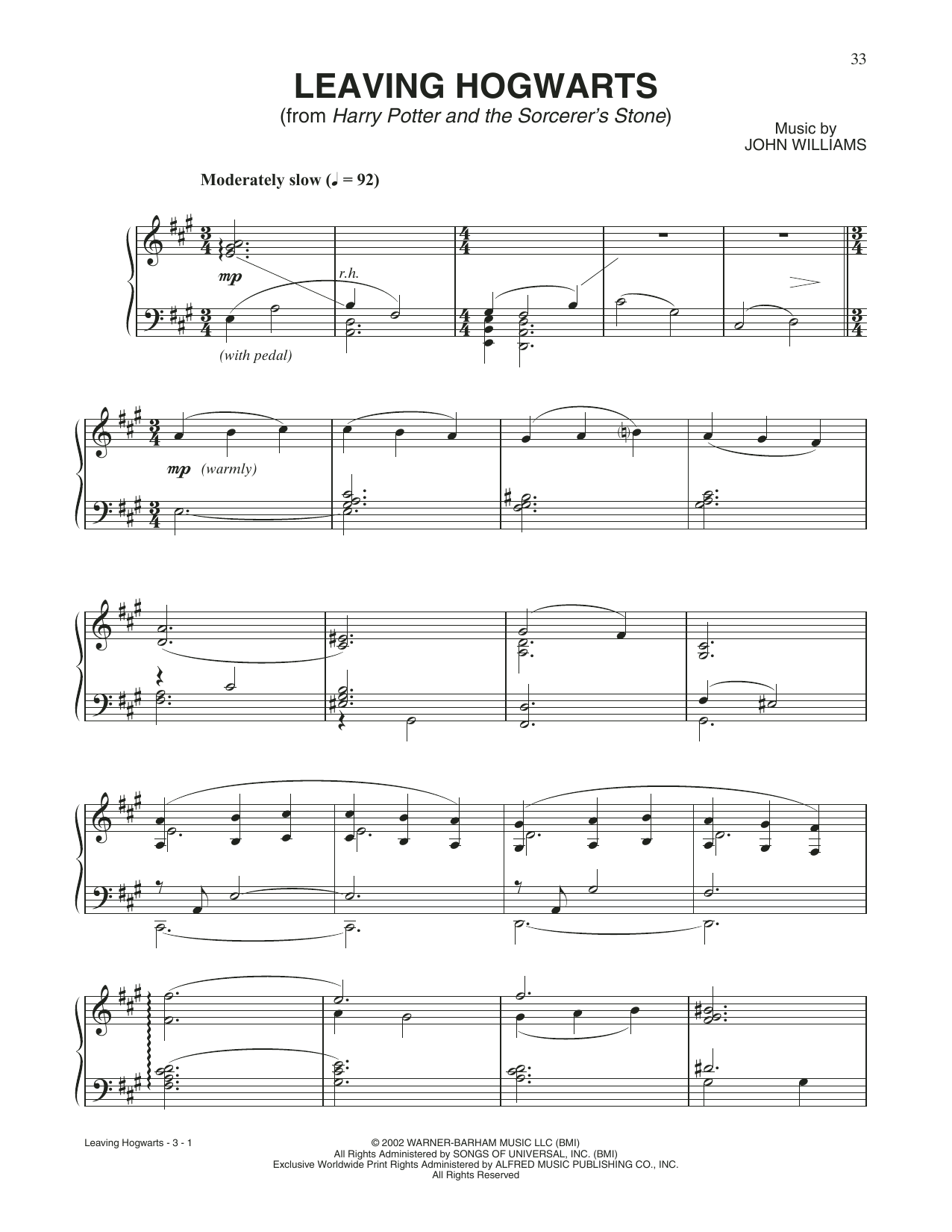 Download or print John Williams Leaving Hogwarts (from Harry Potter) sheet music, chords and digital score arranged for Piano Solo. This Film/TV score includes 3 page(s).