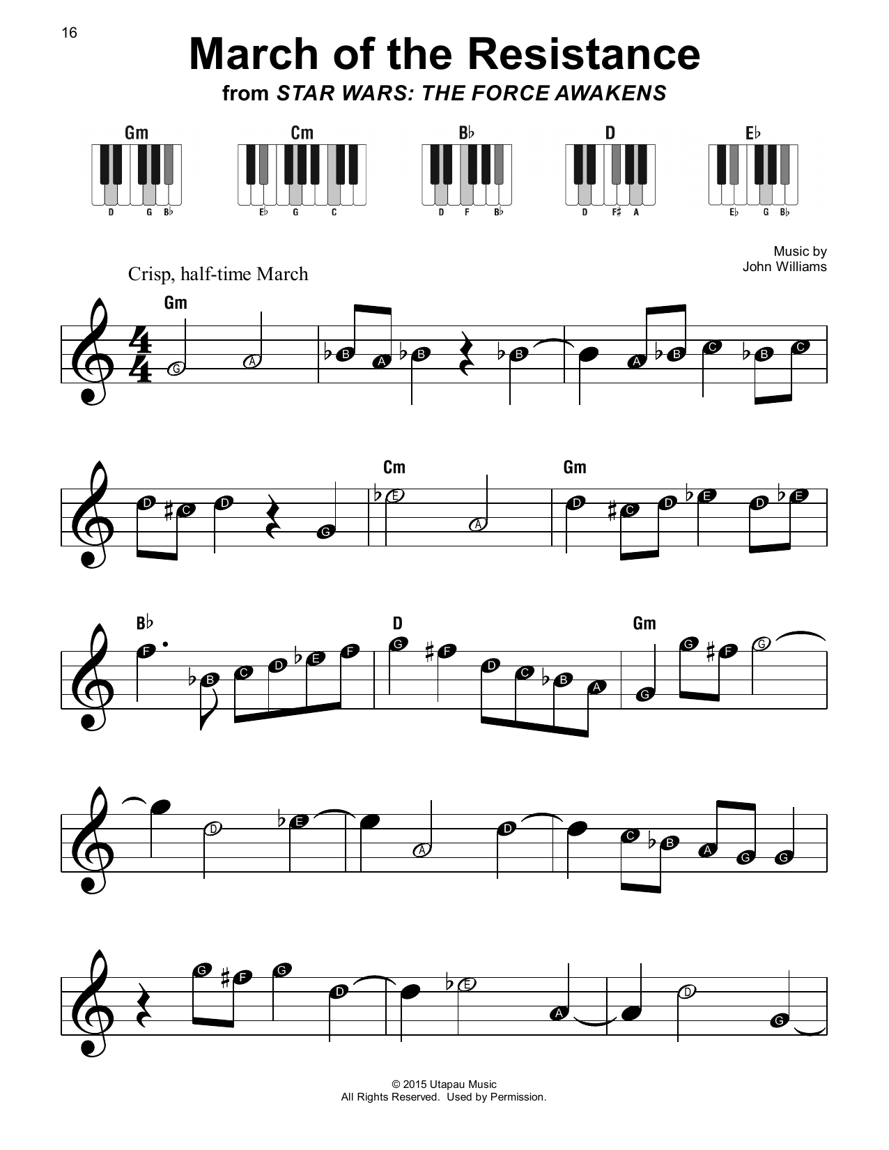 Download or print John Williams March Of The Resistance (from Star Wars: The Force Awakens) sheet music, chords and digital score arranged for Super Easy Piano. This Film/TV score includes 2 page(s).