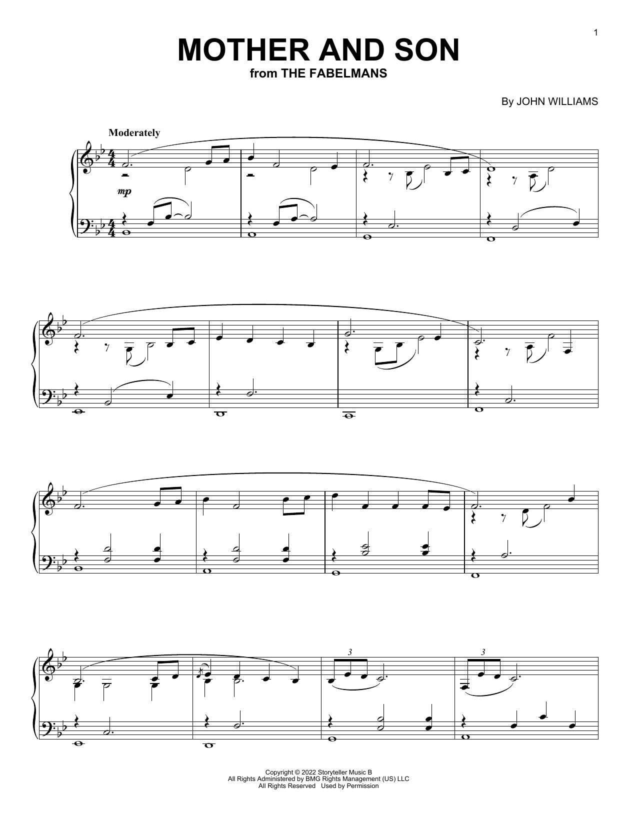 Download or print John Williams Mother And Son (from The Fabelmans) sheet music, chords and digital score arranged for Piano Solo. This Film/TV score includes 3 page(s).