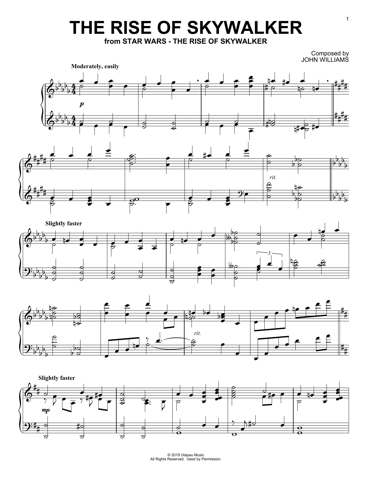 Download or print John Williams The Rise Of Skywalker (from The Rise Of Skywalker) sheet music, chords and digital score arranged for Piano Solo. This Disney score includes 4 page(s).