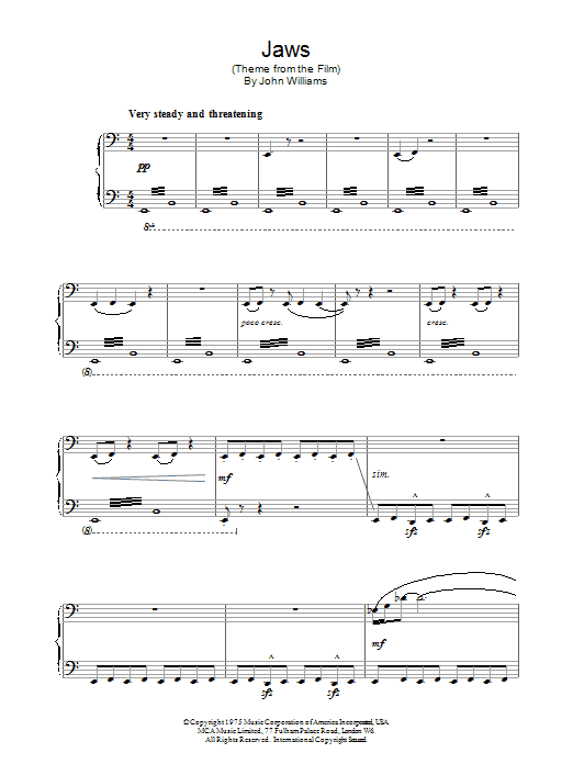 Quick facts Theme from Jaws about digital sheet music