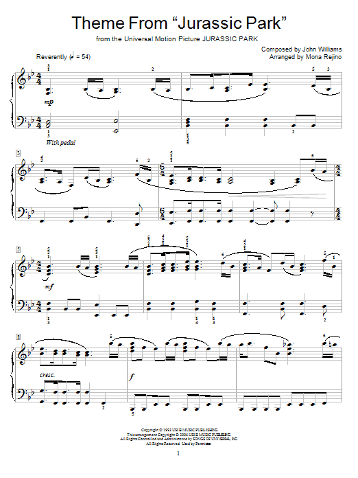 Quick facts Theme From "Jurassic Park" about digital sheet music