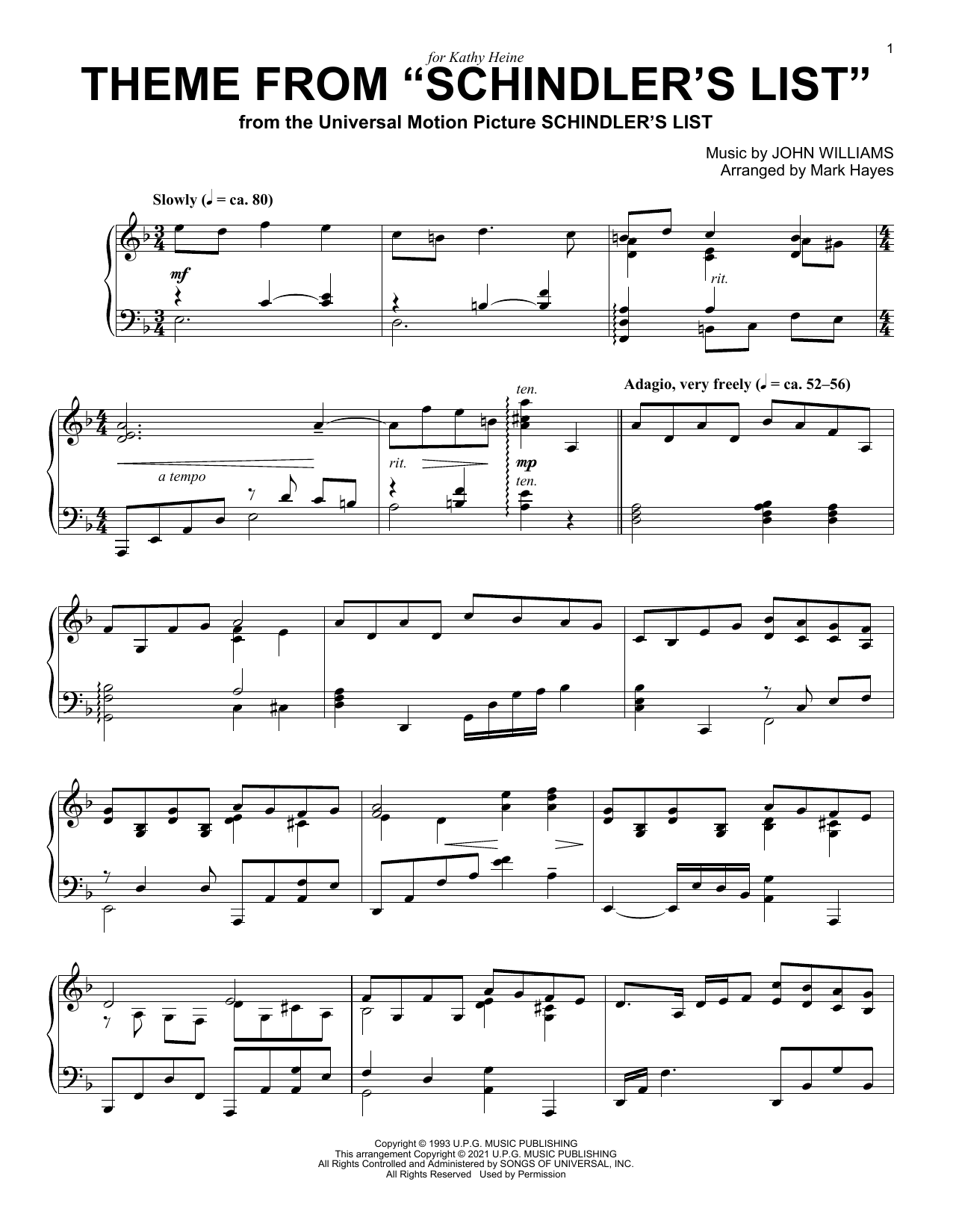 Quick facts Theme From "Schindler's List" (arr. Mark Hayes) about digital sheet music
