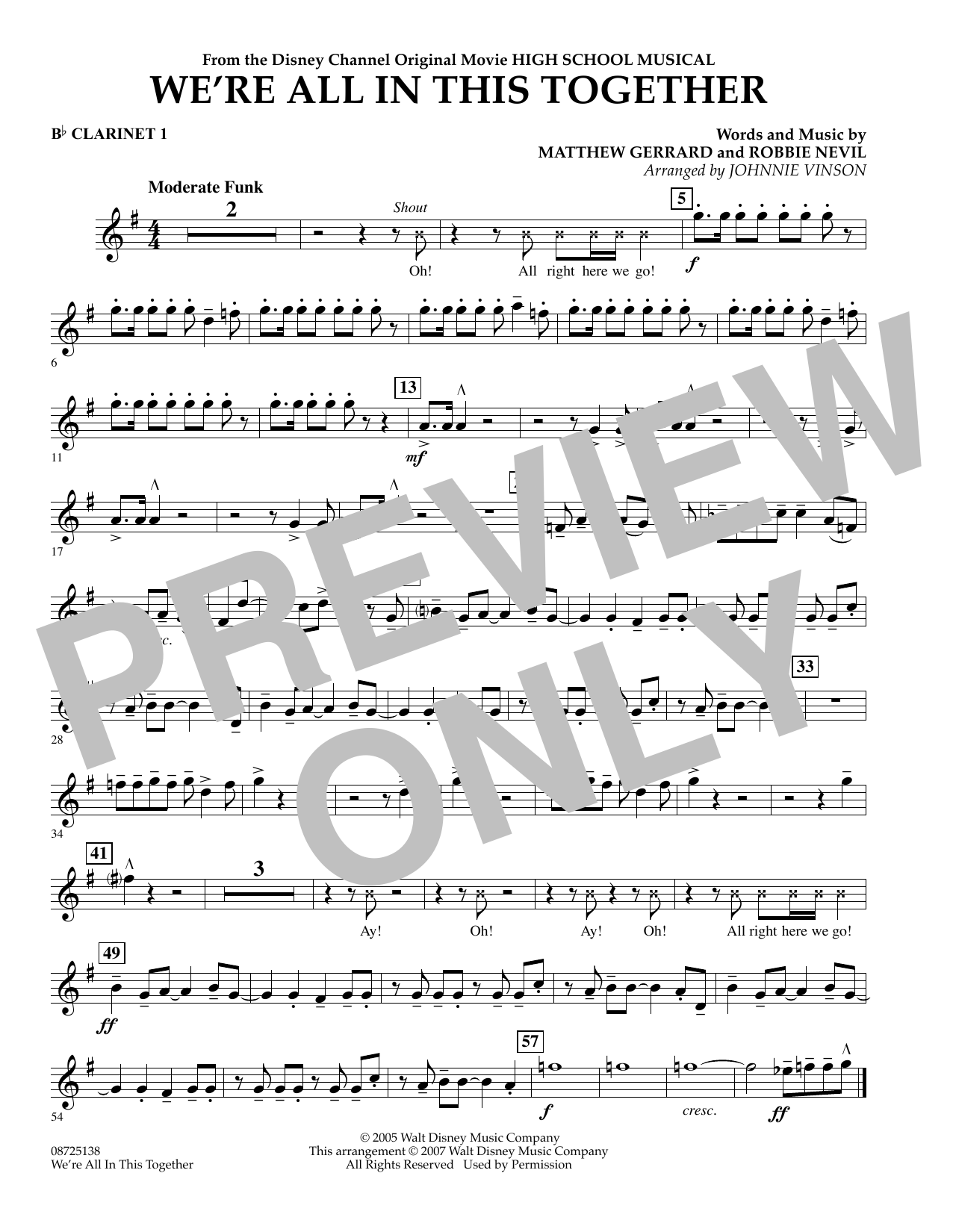 Download or print Johnnie Vinson We're All In This Together (from High School Musical) - Bb Clarinet 1 sheet music, chords and digital score arranged for Concert Band. This Children score includes 1 page(s).